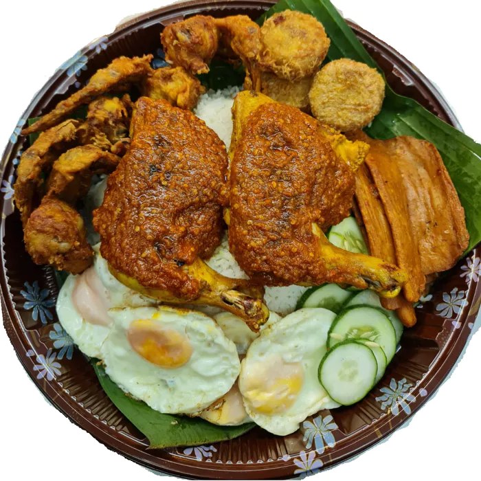 전통적인 나시레막 한 접시는 다음과 같은 단골 반찬과 함께 차려집니다.